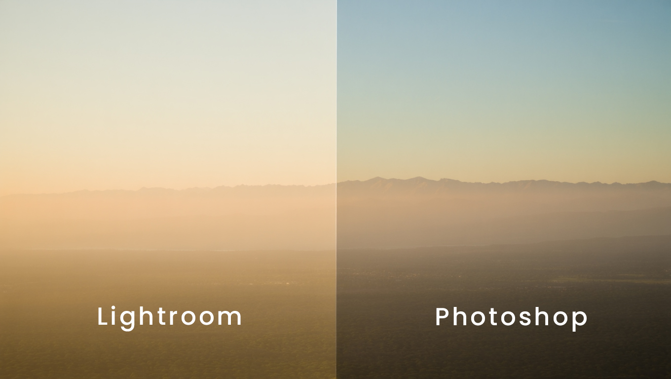 Enquanto o Lightroom trabalha essencialmente no espaço Adobe RGB ou ProPhoto RGB com ajustes globais, o Photoshop permite: