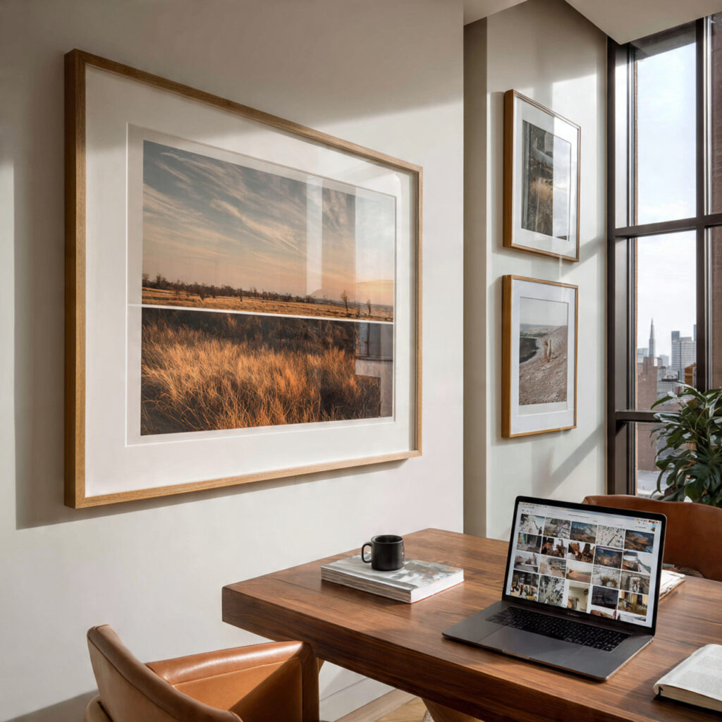 Quando essa mesma fotografia precisa existir no mundo físico, algo muda. Não de forma dramática, mas suficiente para deslocar a percepção. O que antes parecia equilibrado pode perder força. O que parecia profundo pode se tornar plano.