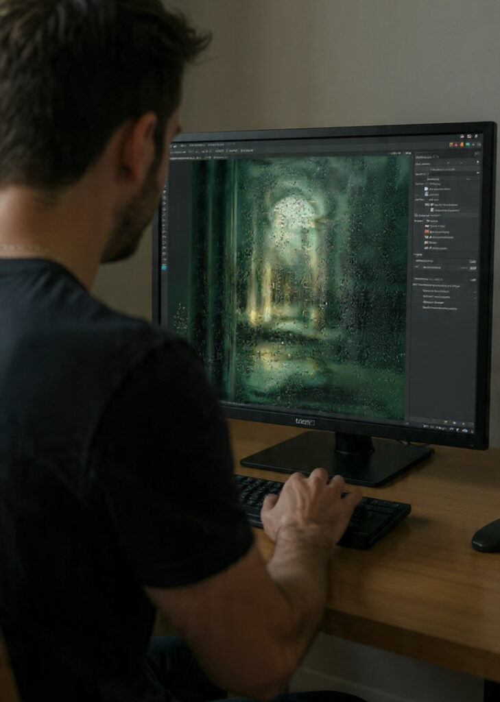 Quando a imagem apresenta áreas escuras ou densas em sombra, muitas vezes aparece um desvio para verde ou para matizes frios inesperados. Essa deriva cromática pode decorrer de vários fatores: perfil de cor inadequado, espaço de cor mal definido, iluminação ambiente contaminada ou até o comportamento do suporte (papel, metacrilato, canvas) sob diferentes condições de luz.