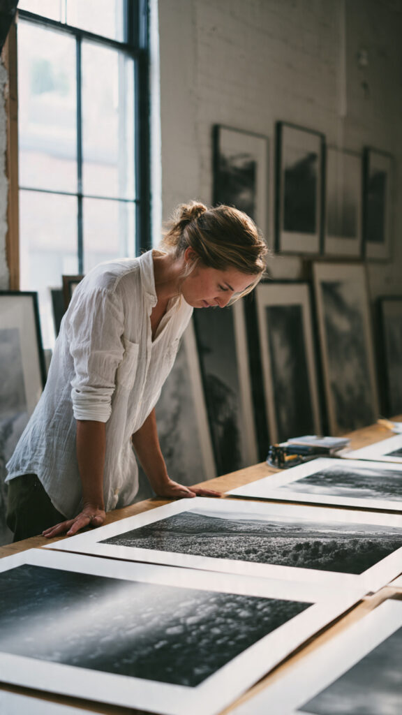 Quando o fotógrafo assume controle da etapa final — escolha de papel, escala, acabamento, fidelidade tonal — ele deixa de entregar apenas imagens e passa a entregar interpretação autoral materializada. Isso altera completamente o discurso de marca.