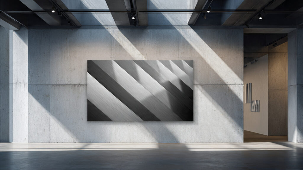 O metal print, por sua vez, conversa com ambientes corporativos, arquitetura industrial e espaços de linguagem tecnológica. A rigidez, a precisão e o acabamento limpo dialogam com marcas que querem transmitir inovação e solidez.