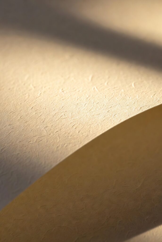 Por isso, superfícies matte profundas, com absorção suave de luz, ganham protagonismo. Papéis 100% algodão com textura natural criam uma experiência mais contemplativa. A imagem deixa de “emitir luz” e passa a “receber luz”.
